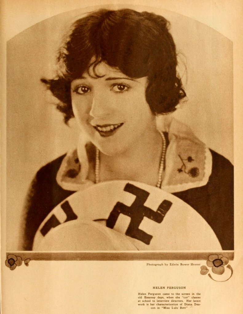 Finally here is another example of fellow 1920s actress Helen Ferguson also posing with the swastika as part of her outfit;