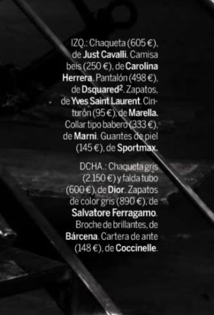 The text is the description and price of what the model is wearing, in euros (!).