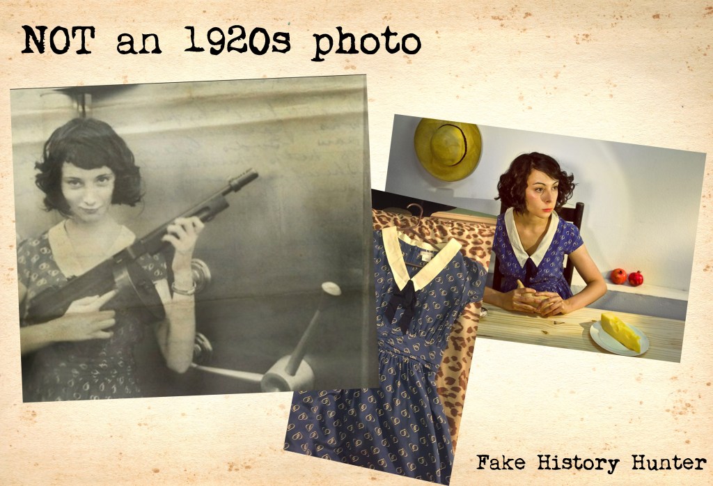 The black and white picture of “Madam Moll” an 1920s bank robber with her machine-gun has been going around the internet for almost a decade and is clearly a modern fake but now and then someone still seems to think it is real.