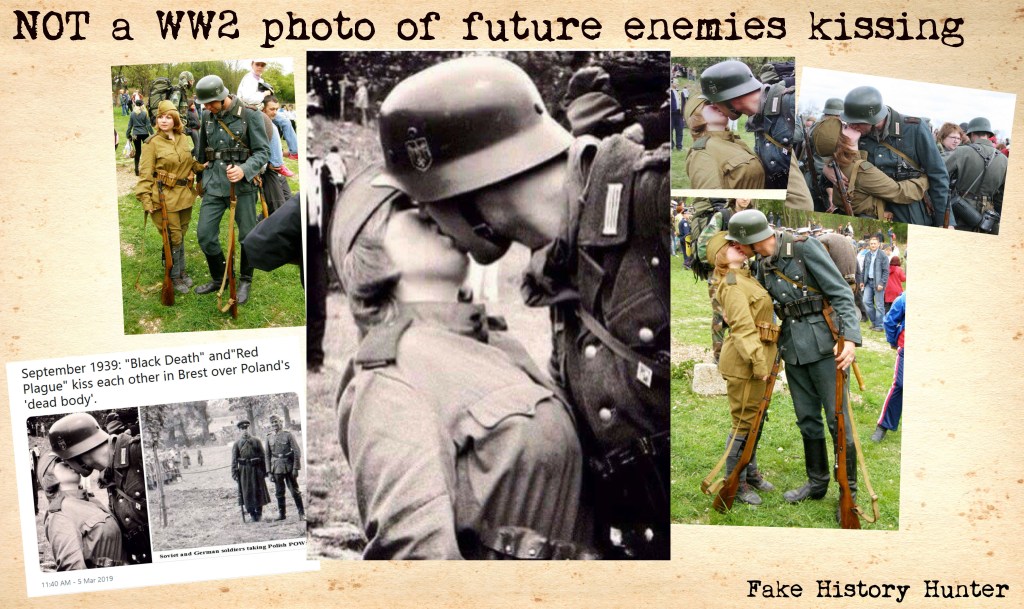 This photo has been shared online with the claim that it shows a German soldier and a Russien soldier kissing during the joined invasion of Poland in September 1939.