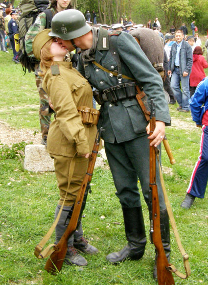 One source claims that the woman in the Soviet uniform and the German soldier are actually married but I can not confirm that.