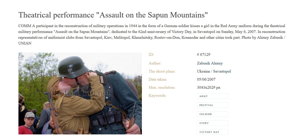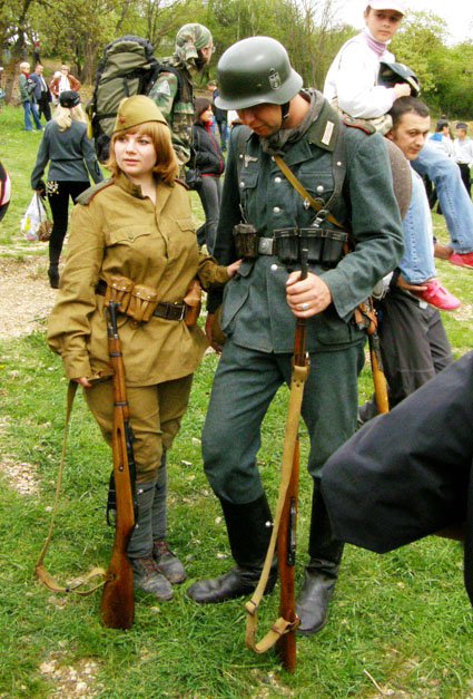 The photo was taken in 2007 during a reconstruction of a WW2 battle (re-enactment) near Sevastopol in Ukraine as part of the 62nd anniversary of Victory Day.