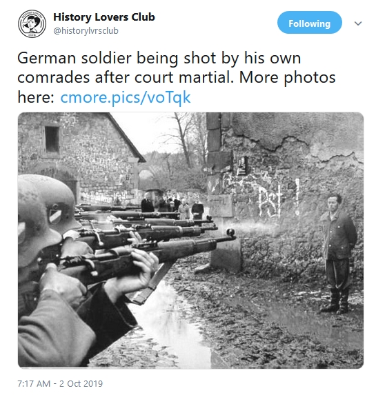 This photo is being shared online supposedly showing the execution of a German soldier for desertion by his own comrades.