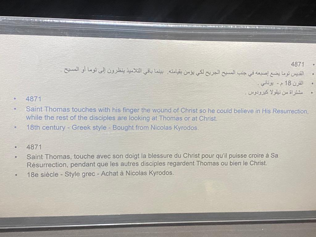 Hassan Khalil was kind enough to go and collect video & photographic evidence for us that proves without a doubt that the actual museum where the painting is says that this is an 18th century Greek piece;