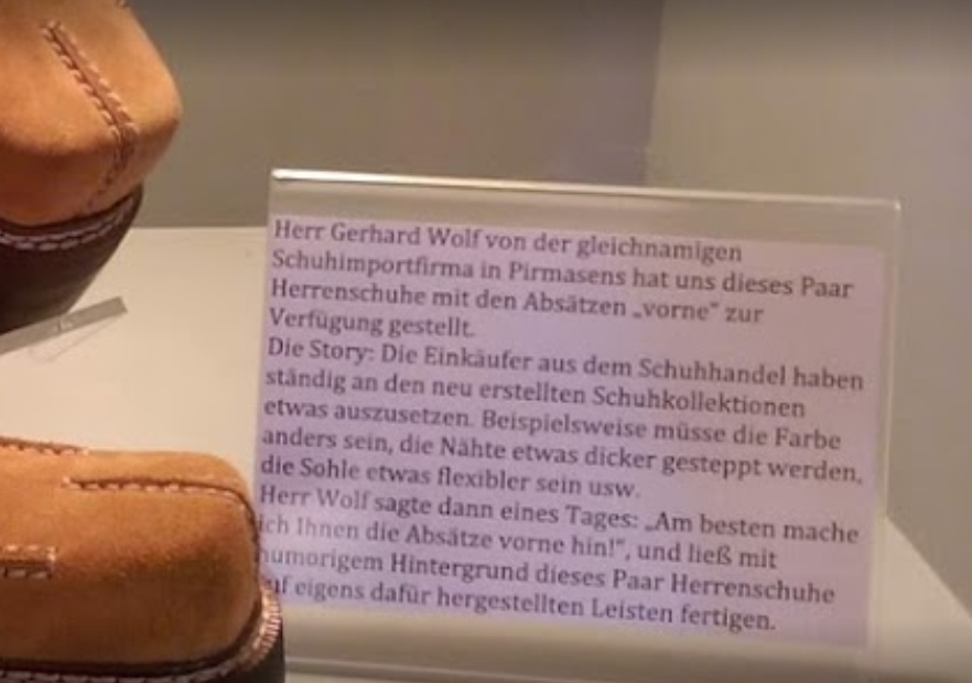 The shoes are exhibited in the Deutsches Schuhmuseum in Hauenstein, yes, a German Shoe museum.