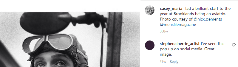 The woman in the photo in question is Casey Drabble, a woman from London who posed as an aviatrix for the very talented photographer Nick Clements at an event at the Brooklands museum in Surrey, Great Britain, back in 2016.
