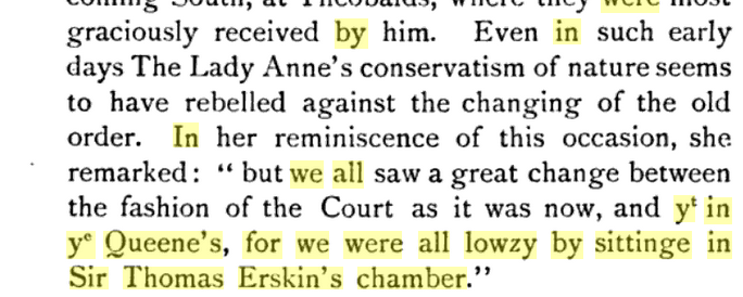 This text above is from “Famous Ladies of the English Court,” published in 1899. Was Anne writing that they got lice in the chamber, or complaining that they were essentially sat in Erskine’s chamber for the events and were not well treated?