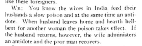 Again, here women just killed their husbands to become widows, not poisoned and then saved them again and again and again to keep him from staying away from home too long.