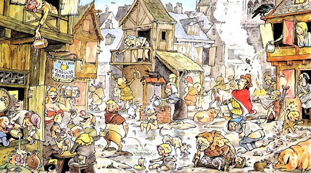 I can’t help but think back to the image of the middle ages as it was depicted in a very popular history book for kids that I grew up with… spot the pigs.