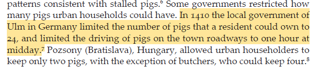 Some places simply banned keeping any pigs in the city except from autumn to winter for Christmas fattening.
