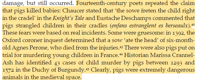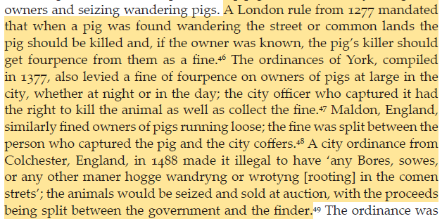 So of course medieval people took this problem very seriously and there were lots of laws & rules regarding pigs that would make people think twice about letting them roam.