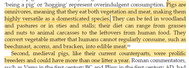 Here Jørgensen explains why pigs were so popular in Medieval Europe: they were like living waste bin, they’d eat your leftovers and turned it into meat, fat, bone and manure.