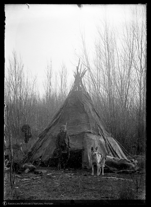 They describe it as “Yakaghir man with dogs at entrance to summer tent, Siberia, 1901” and they identify Mr. Jochelson as the photographer.
