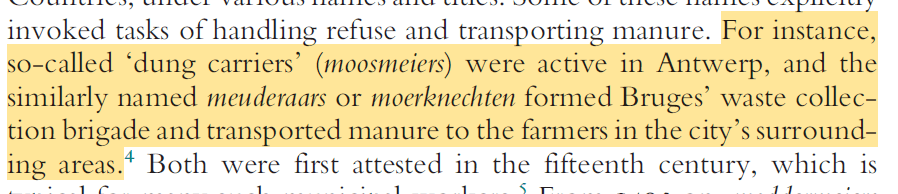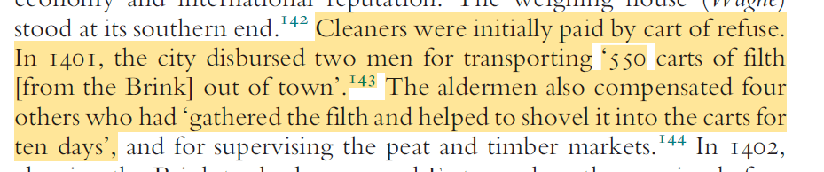 Another thing I keep repeating; yes there was poo and manure all over the place in medieval cities, towns and villages, but they had value and were collected and sold on for use by farmers.