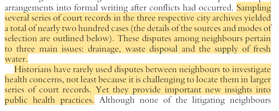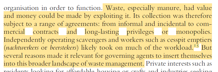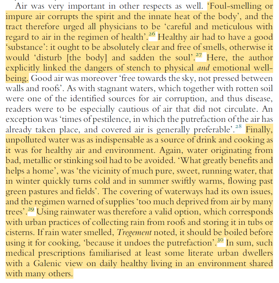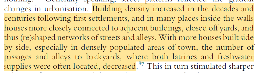 I’ve been trying to explain this for years, people had wells and outhouses in their yards and cities/towns had a highly agricultural character for much of the middle ages and things didn’t start to get seriously wrong till the cities became overpopulated and these outside places started to vanish or become inaccessible.
