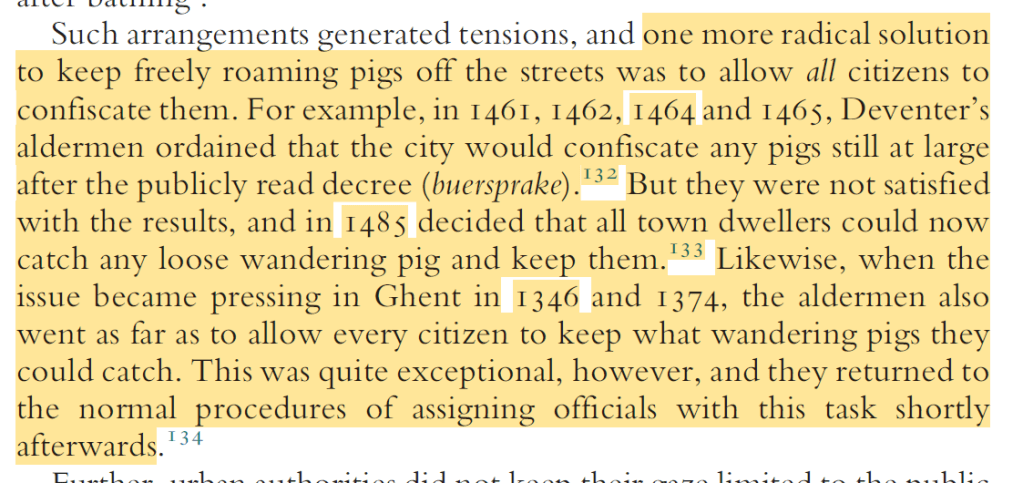 How realistic is the image of free roaming pigs in medieval cities (as often shown in tv shows & films) when anyone could just grab the pig and keep it?!
