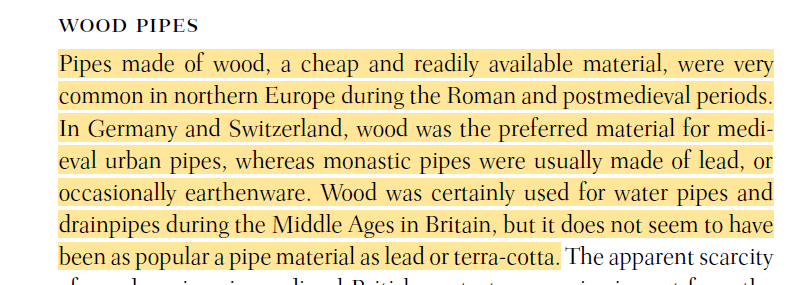 Either way, it’s all true, wooden pipes were used in Roman, Medieval and postmedieval times.