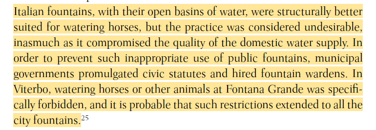 BTW there were also fountains developed that had a special overflow section that would fill a drinking basin nearby just for the horses.