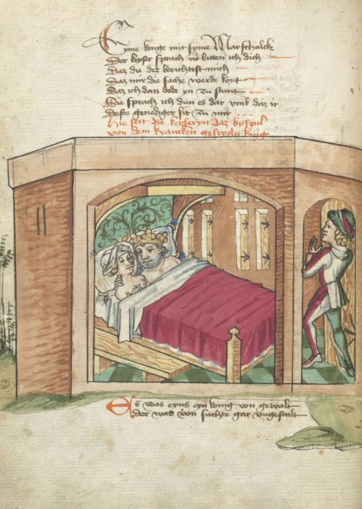 The title is ‘von nachtes hofieren’, which means as much as of nightly wooing or courting.