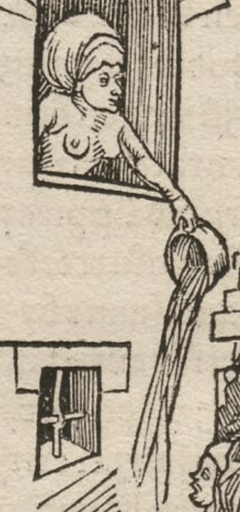 Anyone using this image to try and illustrate the medieval lack of hygiene, how filthy medieval cities were or that medieval people were flinging poo and pee out the window like it was the most normal thing in the world, is being disingenuous.