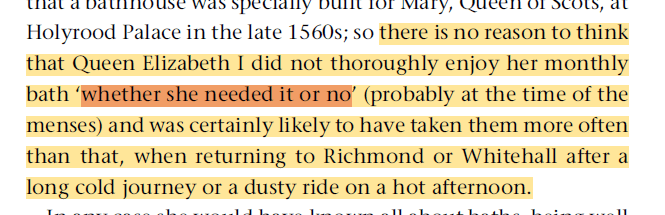 I always enjoy the debunking of that old nonsense about Elizabeth I not or rarely bathing… which is why I was disappointed when I read the next bit;