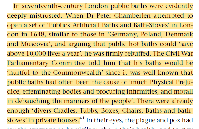 I think this text is a little exaggerated, I read the text but didn’t get the idea that public baths were generally widely distrusted, those who had issues with them were part of institutions, medical professionals, not the general public.