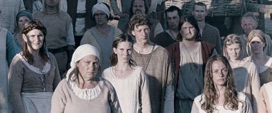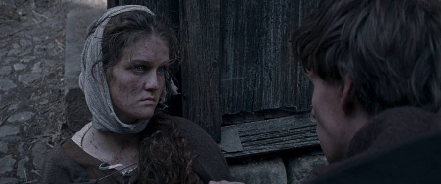 Here’s another extreme in how medieval peasants are sometimes portrayed, nice to see both examples in one film. Here they’re all wearing very light clothes, faded, soft… not very practical… and still no real colours!