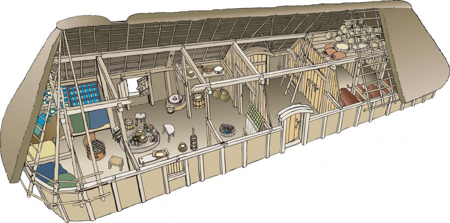 Archaeological evidence of people sharing a roof with cattle but not their living spaces: