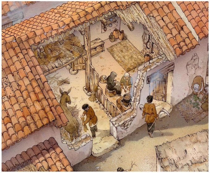 Finally here are a bunch of random illustrations I found online that show a more realistic, I think, image than the ones I started the thread with, they show people sharing a roof but not their living space with cattle.