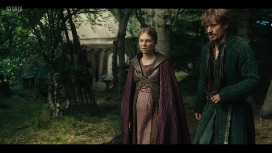 I mean it looks cool but… well, odd. Is she going to a LARP event after filming? Also why is her hair not covered? Are they not married yet?