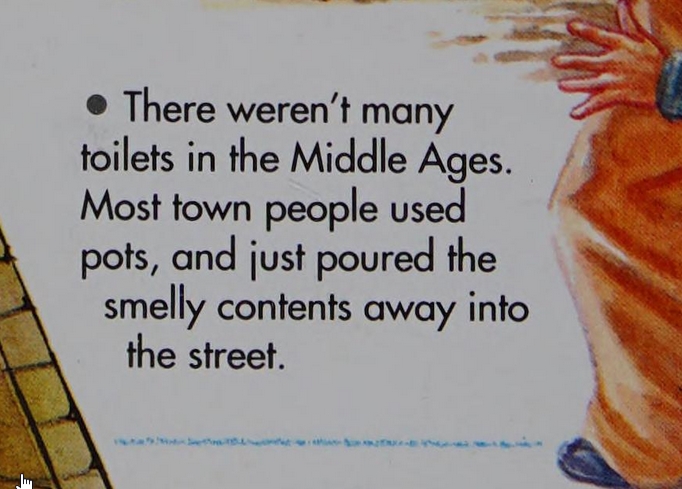 Yes some dirty anti-social people did this but by putting it in a kids book like this, you’re suggesting this is what medieval cities looked like, that it was common.
