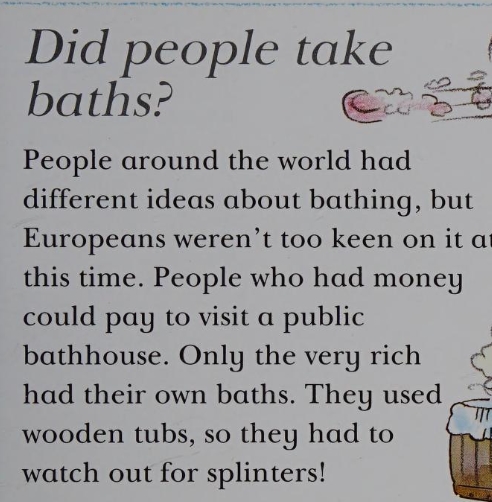 Europeans were very keen on bathing, bath houses were very affordable and popular, they regularly were even free for the poorest.