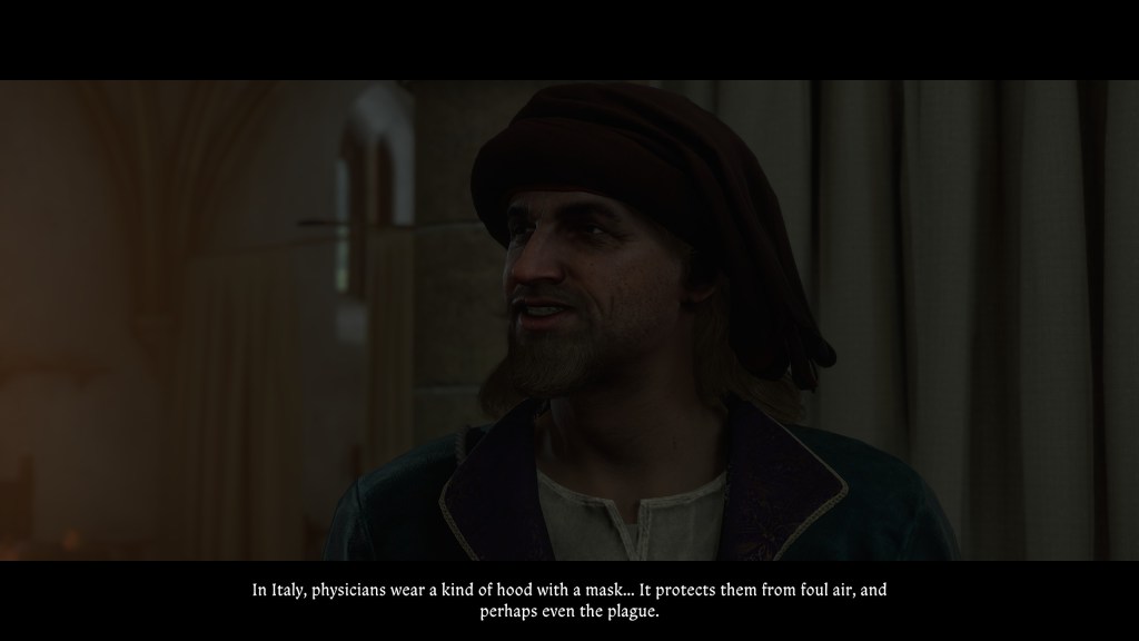 In the game we’re then told to go make a plague mask… I was so upset, so disappointed, honestly, how could this game that put so much effort into being historically accurate mess up this badly?!