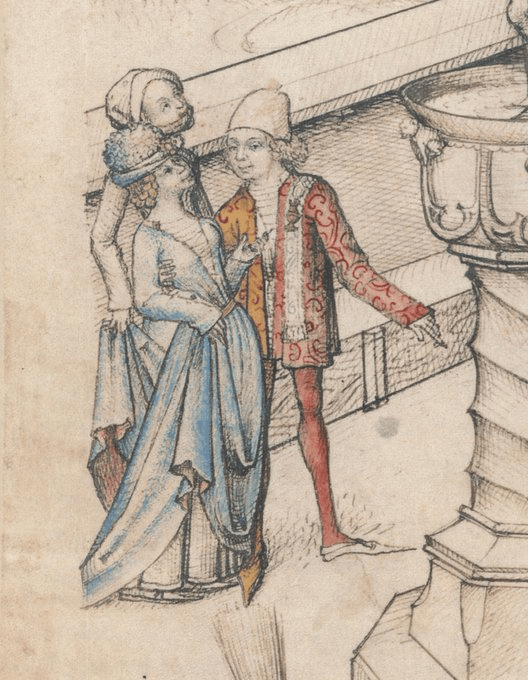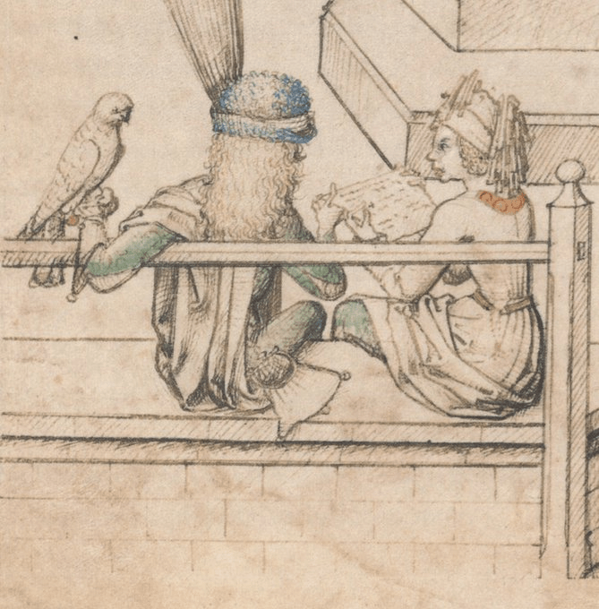 Chap is taking a break from falcon hunting, or is he just trying to look cool?. The lady is reading something, while some people think medieval people couldn’t read and women had no education, she’s just sitting there reading, how dare she 😉