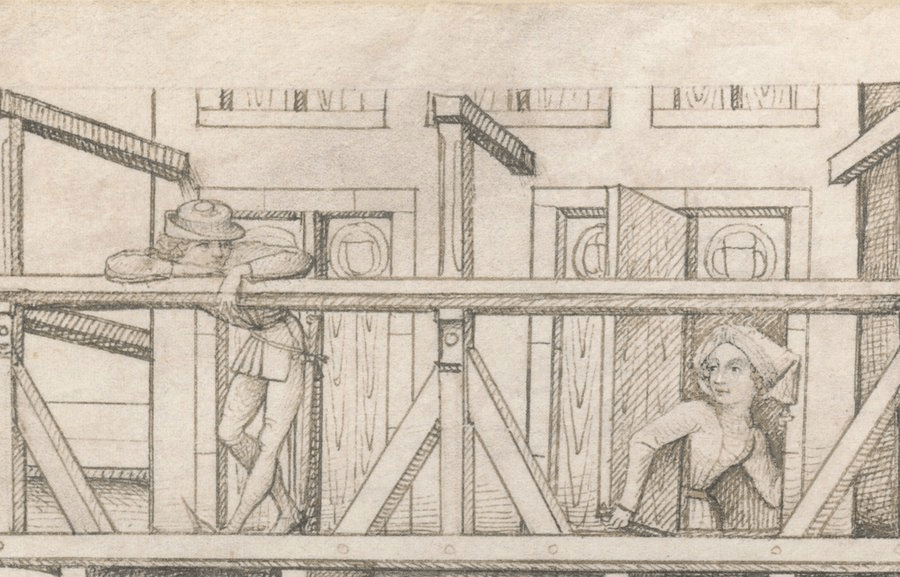 And look at the slippers or pattens, kicked off by one of the bathers:
