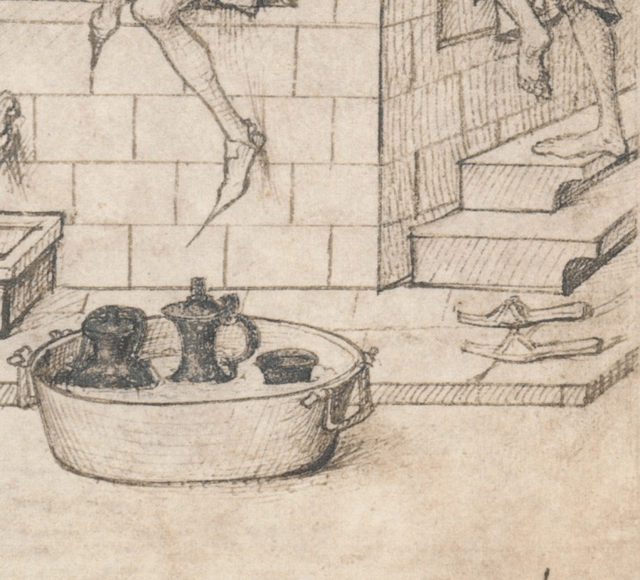 Those jugs don’t look like something you use to carry water in to fill the bath with, they’re fancy, I reckon those are filled with delicious wine, mead or ale!