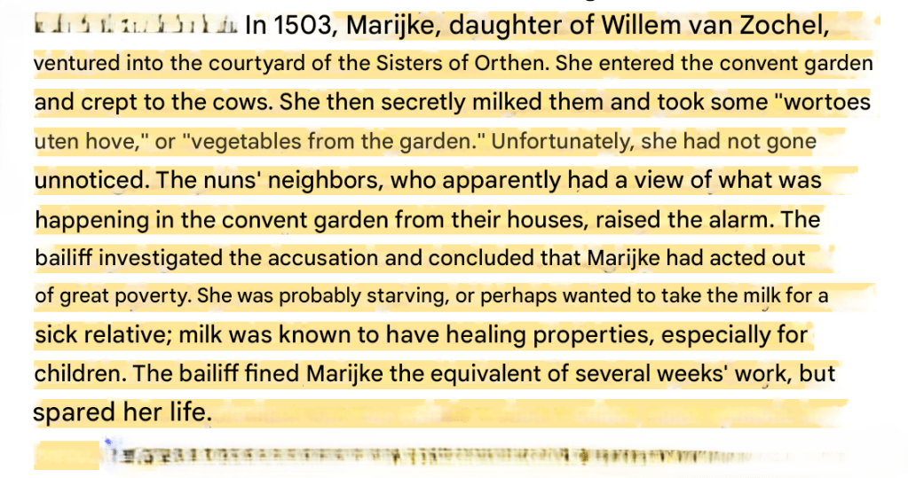 But just because Marijke, daughter of Willem, wanted some milk, we now know she existed.