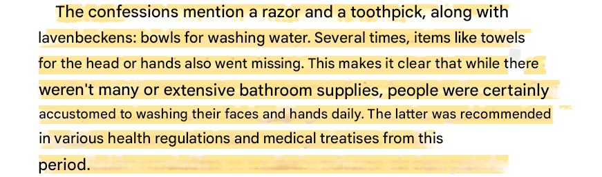 And these objects thieves had stolen deal with another myth, the one that medieval people rarely washed and didn’t care about hygiene: