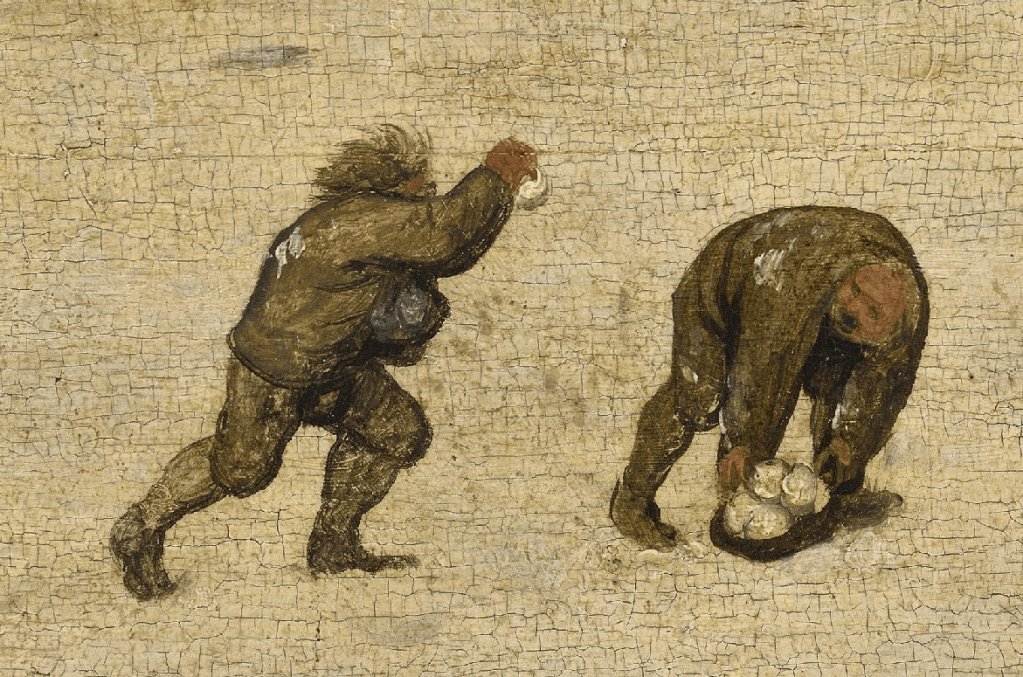 Snowball fight! Men and women, chaos, some are stocking up on ammo it seems.