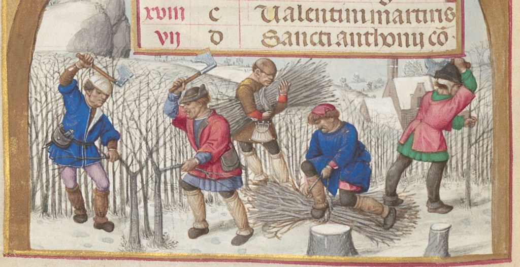Here we see one of the most important jobs in winter time, the chopping & gathering of firewood, a fascinating detail here is that they’re cutting thin branches of young trees that seem to be planted just for this function.