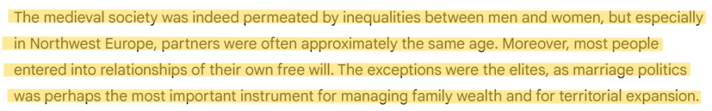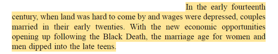 All this put together explains why most medieval Europeans didn’t get married till they were into their 20s.
