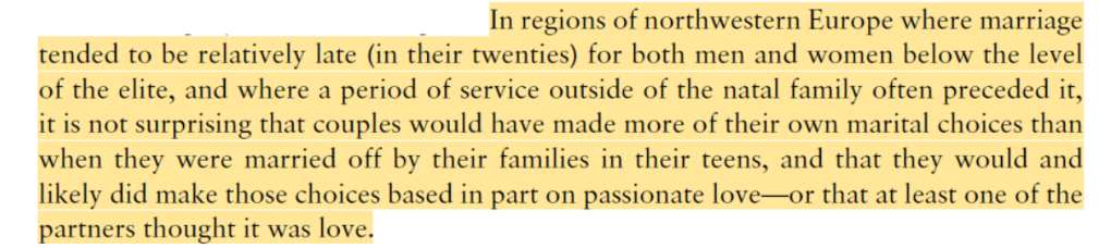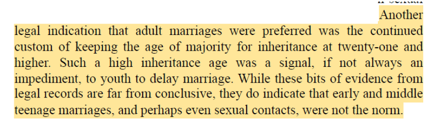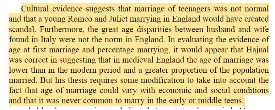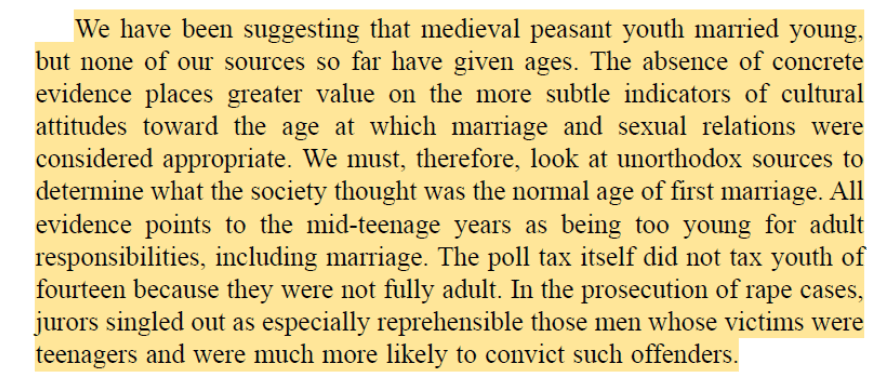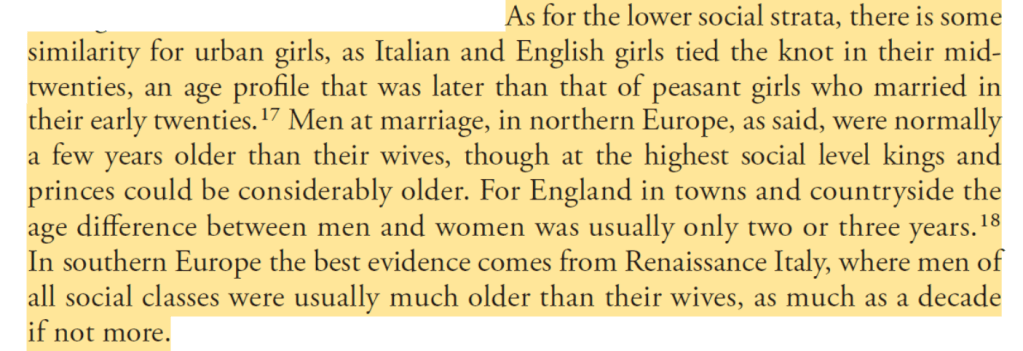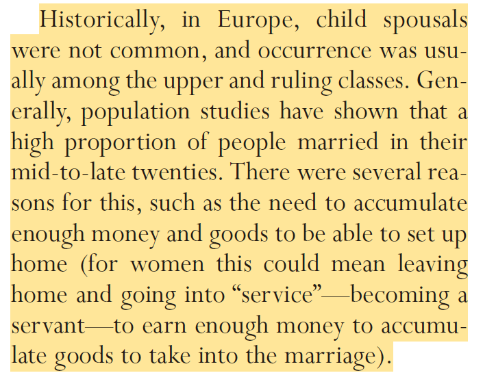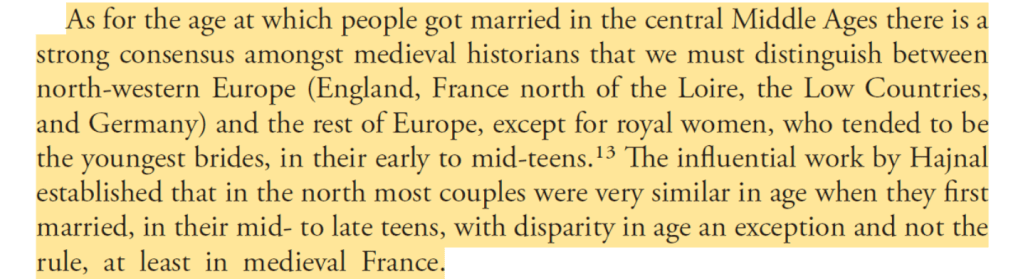 As all these texts and the historical sources & records show, Europeans, at least in the North West, did not marry young, except the tiny percentage of nobles & royals.