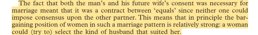 The following text comes from ‘A Cultural History of Marriage in the Medieval Age’, eited by Joanne M. Ferraro (AD 2021):