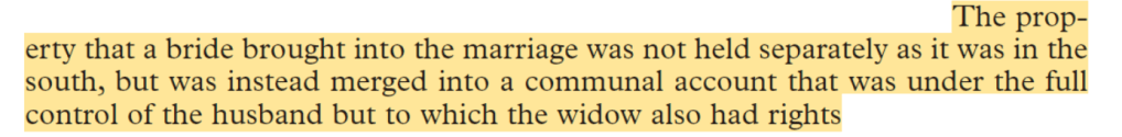 - Both men & women inherited from their parents and had the opportunity to actually work and look after themselves.