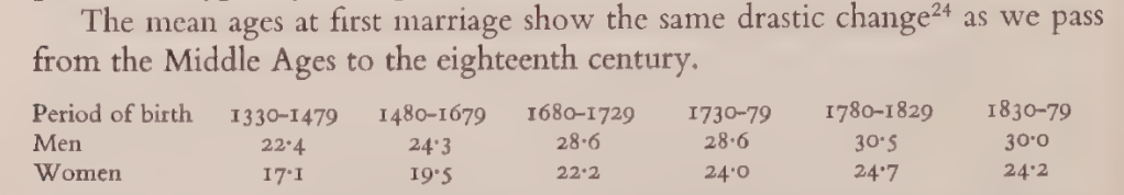 Anyway, it’s very interesting to me that so much is pointing towards your 20s being the most fitting age for marriage & babies and this being the situation in Medieval NW-Europe.