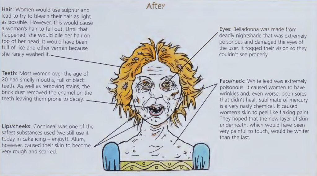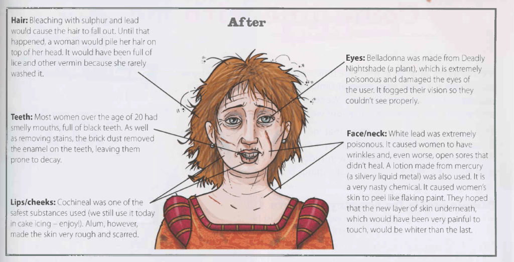 Although some of the makeup Tudor women used was indeed unhealthy, the following image is an exaggeration: