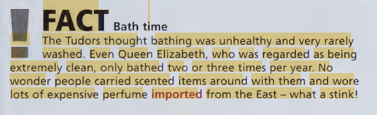 Although it is true that Tudors were less keen on bathing than their medieval ancestors, it seems that people are a bit too keen to go overboard with how this effected their actual habits.