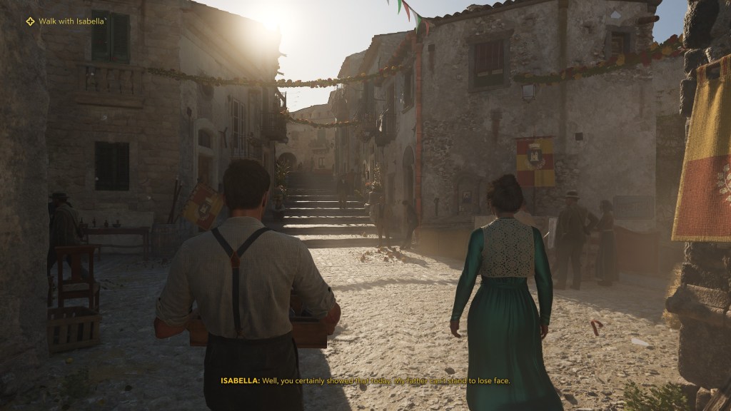 Of course some thugs bother us and I fight them, defending Isabella, giving me some credit with the family: