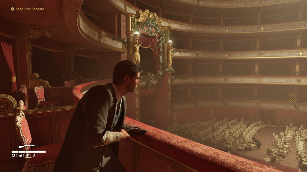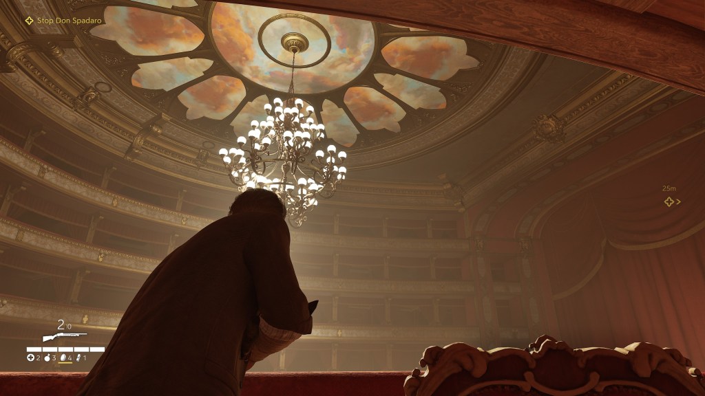 The entire game takes place on quite a small map, so it’s nice when we get to travel to the opera house in Palermo: