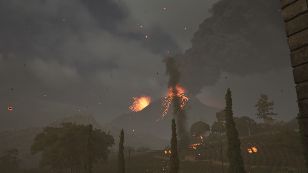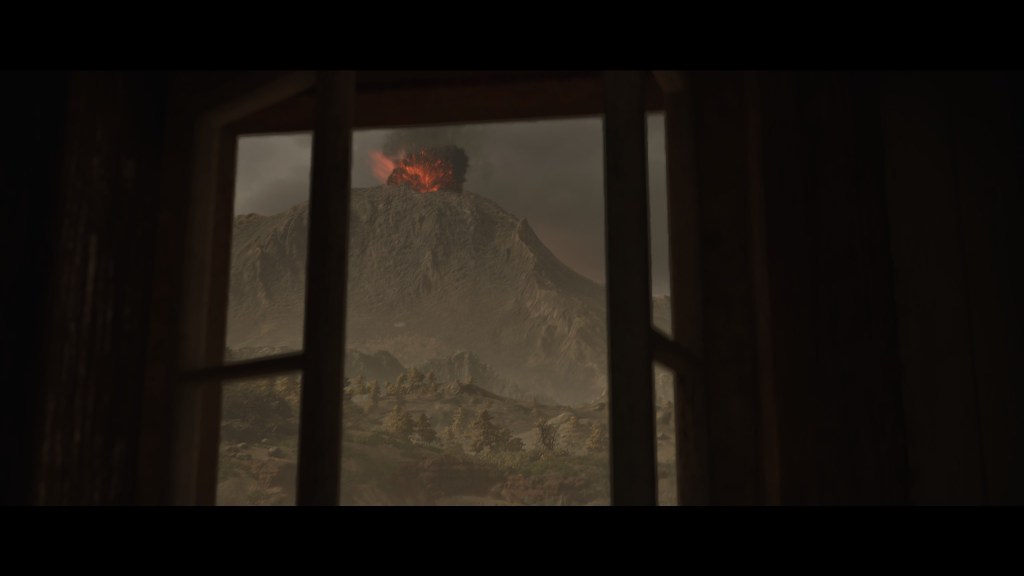 It would have been even more fun if this all took place in the town, with ash & rolling lava streams, but alas: